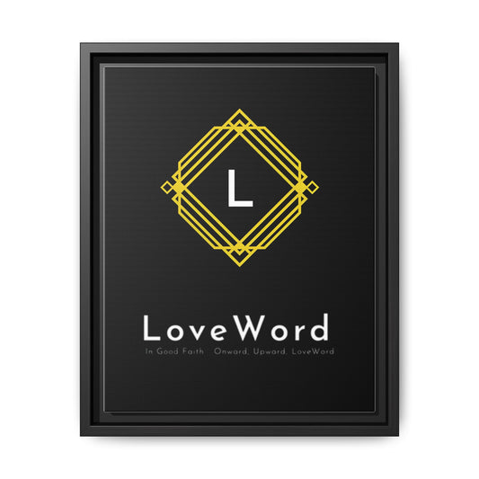 Framed Matte Canvas Art – LoveWord Gold Emblem on Black