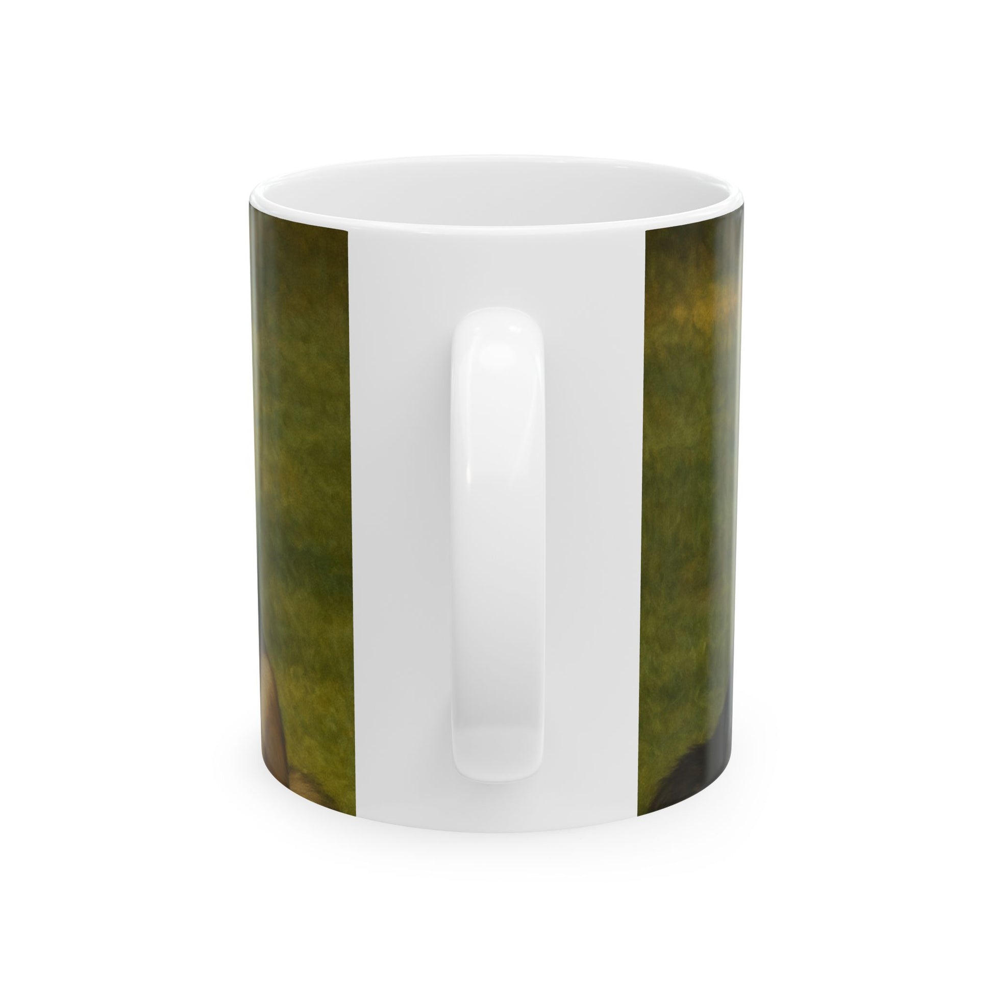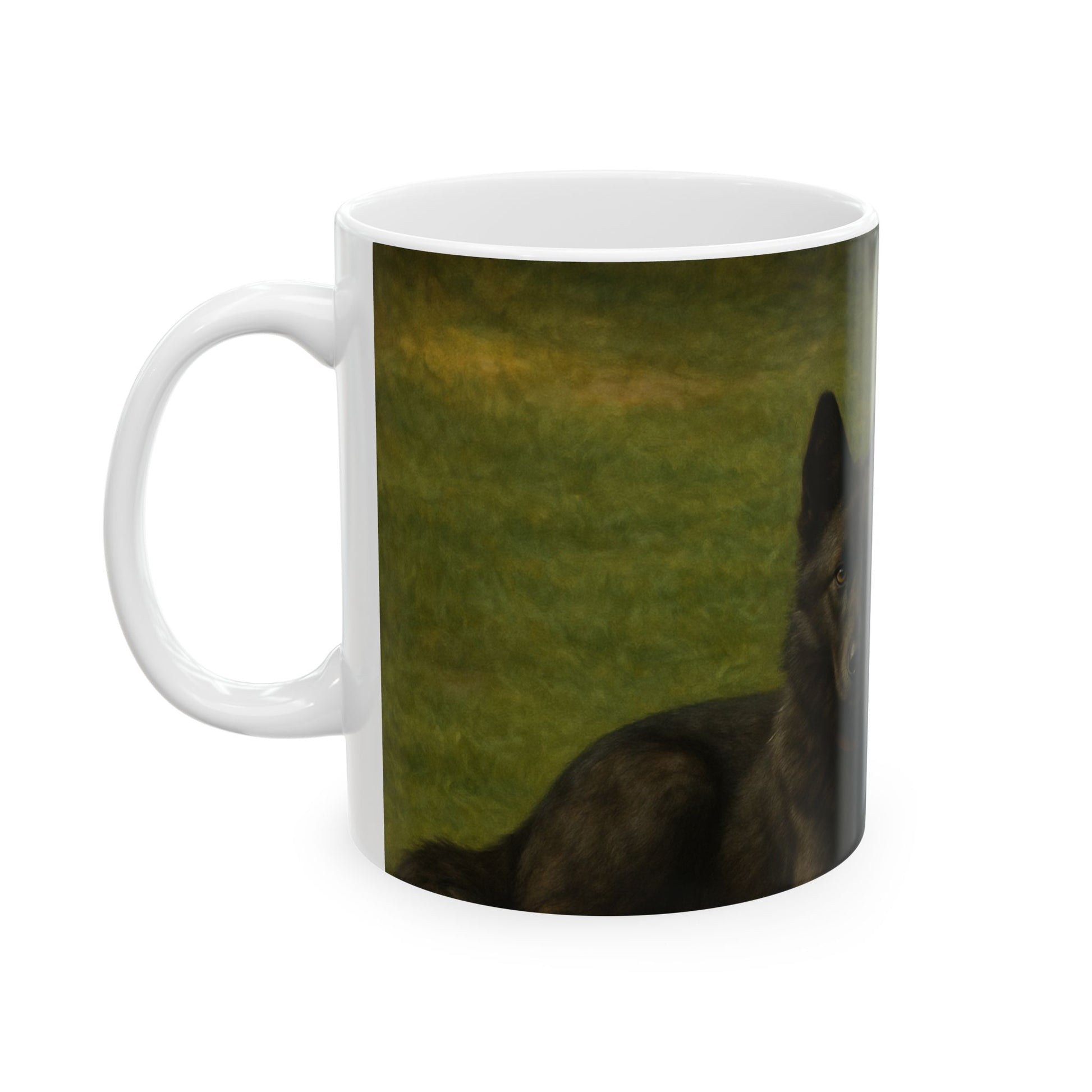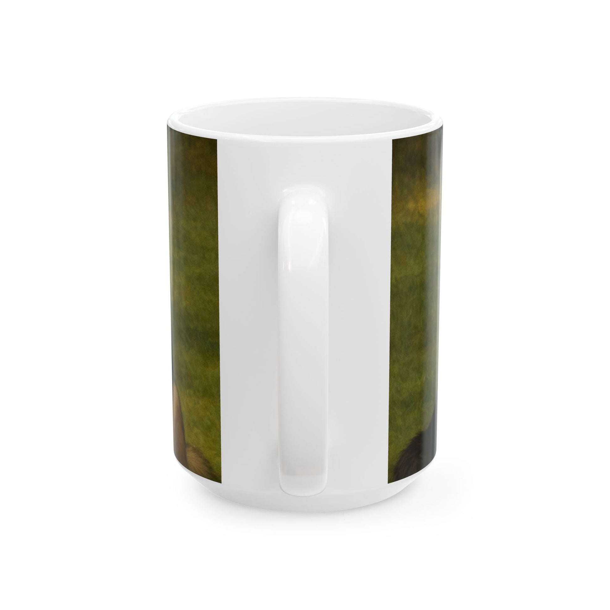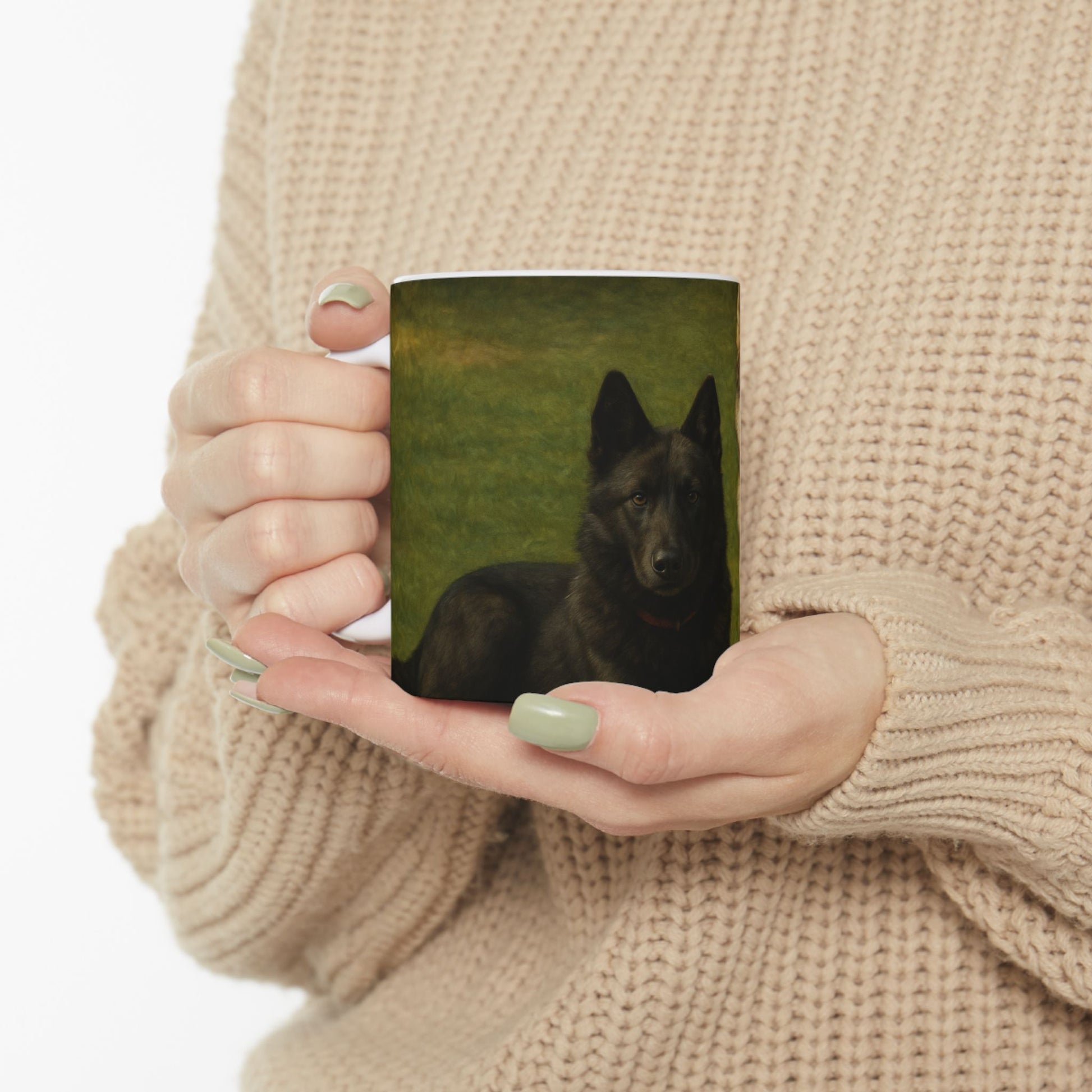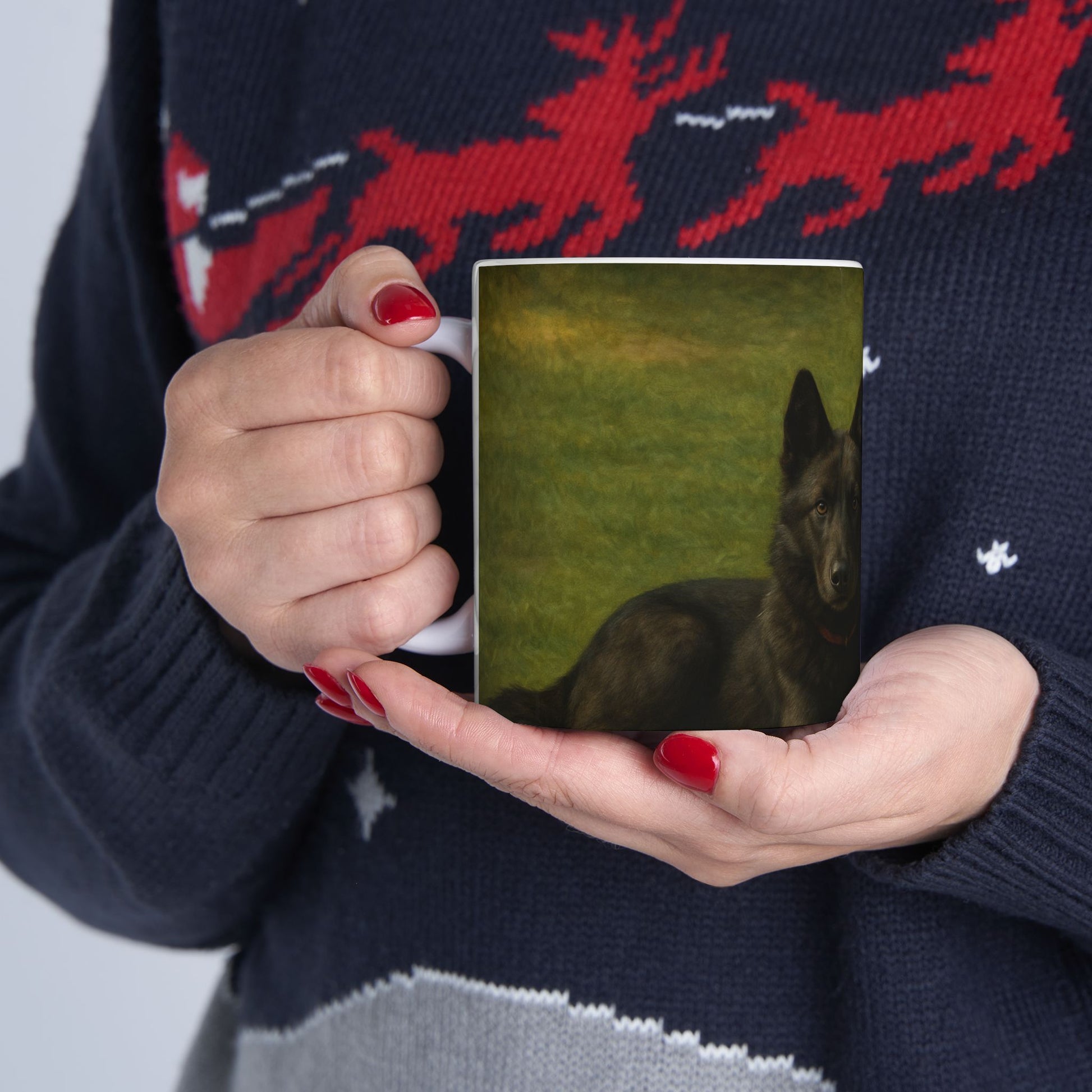 Warm morning light pools on the counter and these two watchful companions keep you company. This glossy ceramic mug carries a detailed portrait of two attentive dogs—one dark-coated, one golden—set against a soft, painterly green backdrop. It feels like a quiet country morning: the steam rises, the world slows, and you sip while their steady gaze anchors the day. The images wrap around the mug, so the scene reads whether you’re left- or right-handed. Reliable in daily life, the mug’s bright print stays vibrant and the shiny finish adds a cozy, polished look to your kitchen or office shelf.