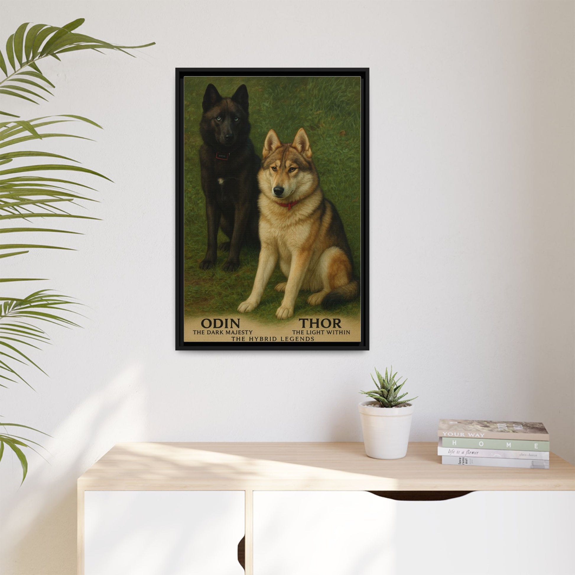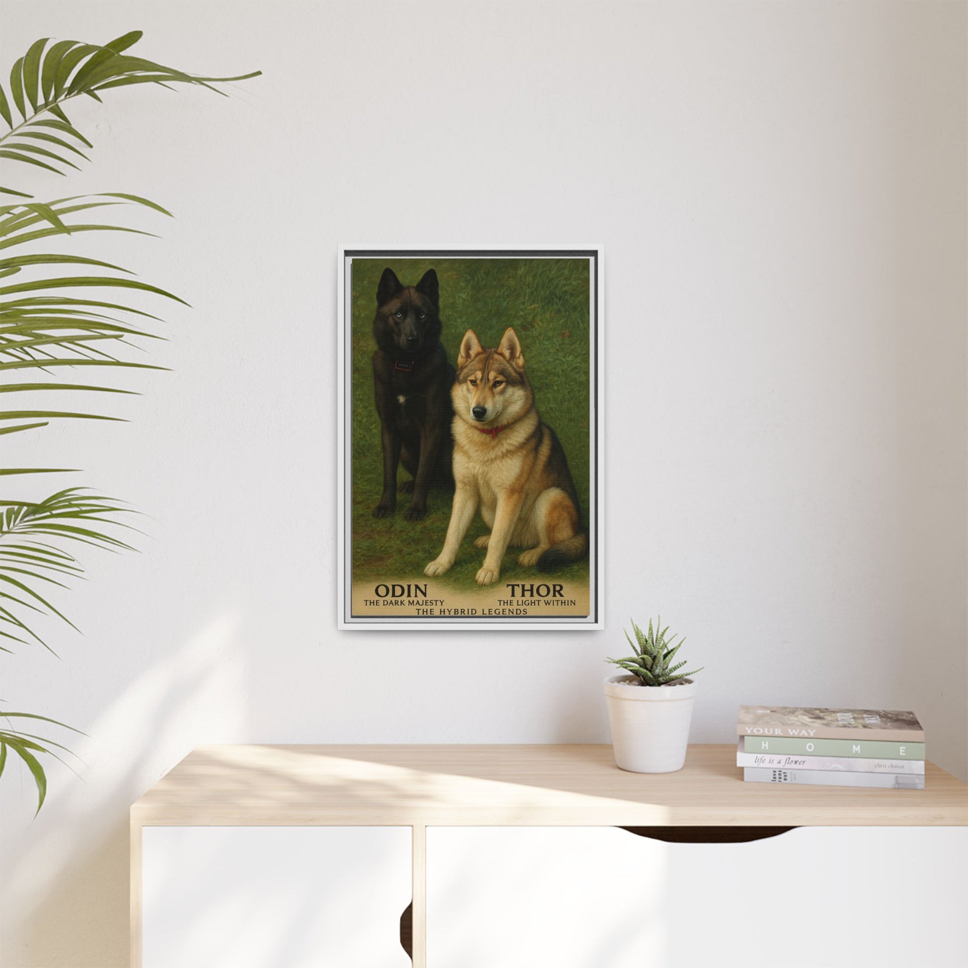 Celebrate the power, elegance, and undeniable presence of Odin and Thor — The Hybrid Legends with this beautifully crafted framed matte canvas art. Designed to showcase their realistic hybrid portraits in stunning detail, this piece brings depth, warmth, and personality to any space.