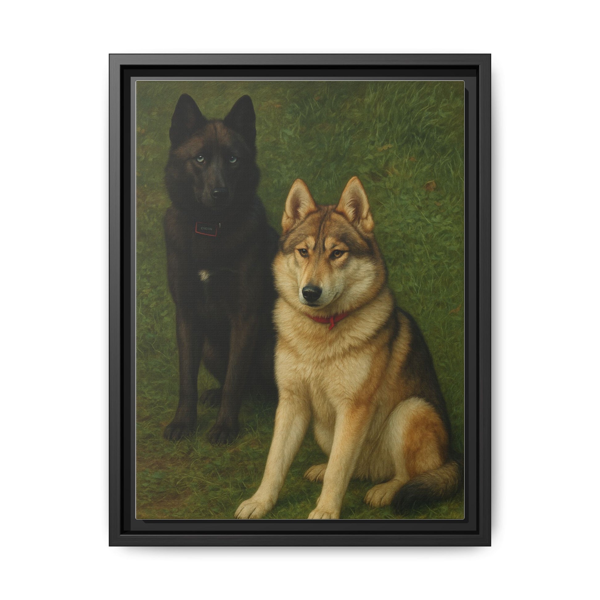 Printed on premium matte canvas and professionally framed, every feature—from their expressive eyes to their rich black-and-tan coats—is rendered with gallery-quality clarity. This artwork adds a bold, modern statement to your wall décor while honoring the strength and spirit of these remarkable companions.